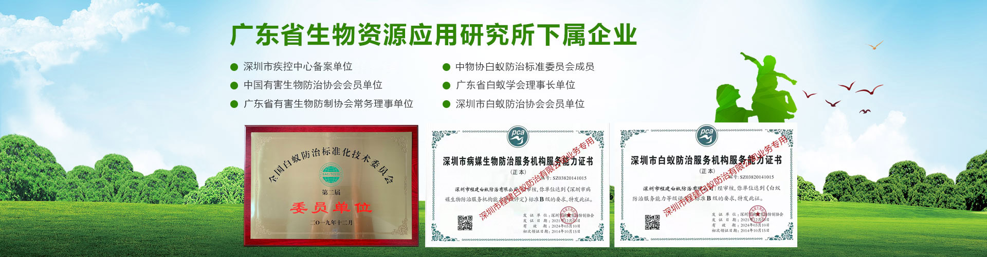 專注于徹底根治、防治結(jié)合,售后跟蹤服務(wù),專業(yè)服務(wù)工程師有豐富實(shí)戰(zhàn)經(jīng)驗(yàn)超過十年。持有專業(yè)資格證書認(rèn)證:“有害生物防制服務(wù)機(jī)構(gòu)服務(wù)能力證書B級(jí)”、“白蟻防治服務(wù)機(jī)構(gòu)服務(wù)能力證書B級(jí)”所有員工持有“深圳市白蟻防治上崗證”和“深圳市除蟲滅鼠上崗證”,雙資格證上崗服務(wù)。榮獲過:“優(yōu)質(zhì)服務(wù)示范單位”、“白蟻防治服務(wù)信譽(yù)AAA級(jí)單位”、“深圳市白蟻防治先進(jìn)單位”、“深圳市十大白蟻防治品牌”、“深圳市殺蟲公司”、“深圳市消殺公司”先進(jìn)單位等榮譽(yù)。